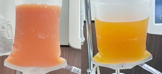 图为血脂高的血浆和正常血浆对比(孙浩杨供图)