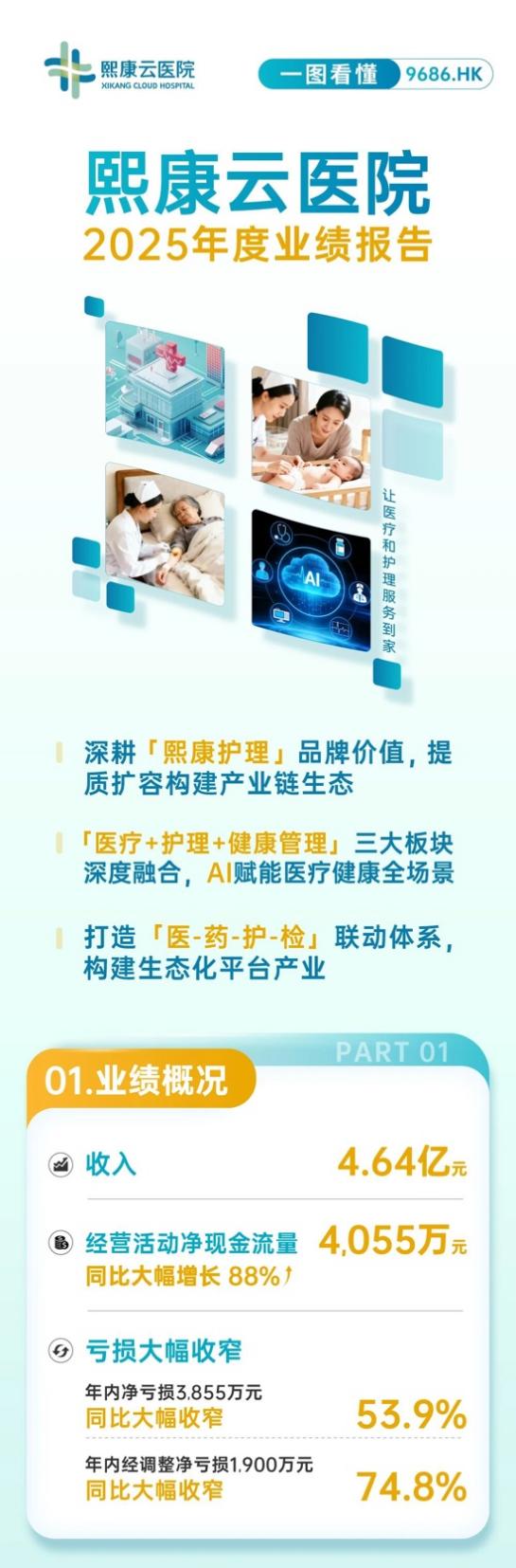 3月20日,熙康云医院(9686.HK)发布2025年全年业绩报告,通过剥离非核心亏损业务、处置线下低效资产,集中资源发力居家护理等核心业务,财务质量稳步改善,经营效率持续优化。